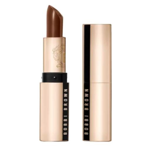 Bobbi Brown Luxe Lipstick - 114 Brownstone (Rich Cocoa) - .12 oz / 3.5 g. What it is: A skincare-infused statement lipstick for lips that feel as luxe as they look. What Else You Need to Know: This luxurious satin lipstick glides on effortlessly and hydrates for up to 10 hours, visibly improving the condition of lips after just one week. Infused with nourishing floral extracts and jasmine flower wax, the creamy formula resists fading, feathering, and smudging