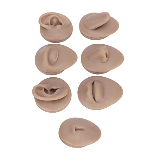 Body Piercing Practice Model Body Part Displays Set Simulation Silicone Ear Eye Nose Mouth Tongue Belly Button Model for Novice Piercer Soft Silicone Body Part Model (Dark Skin