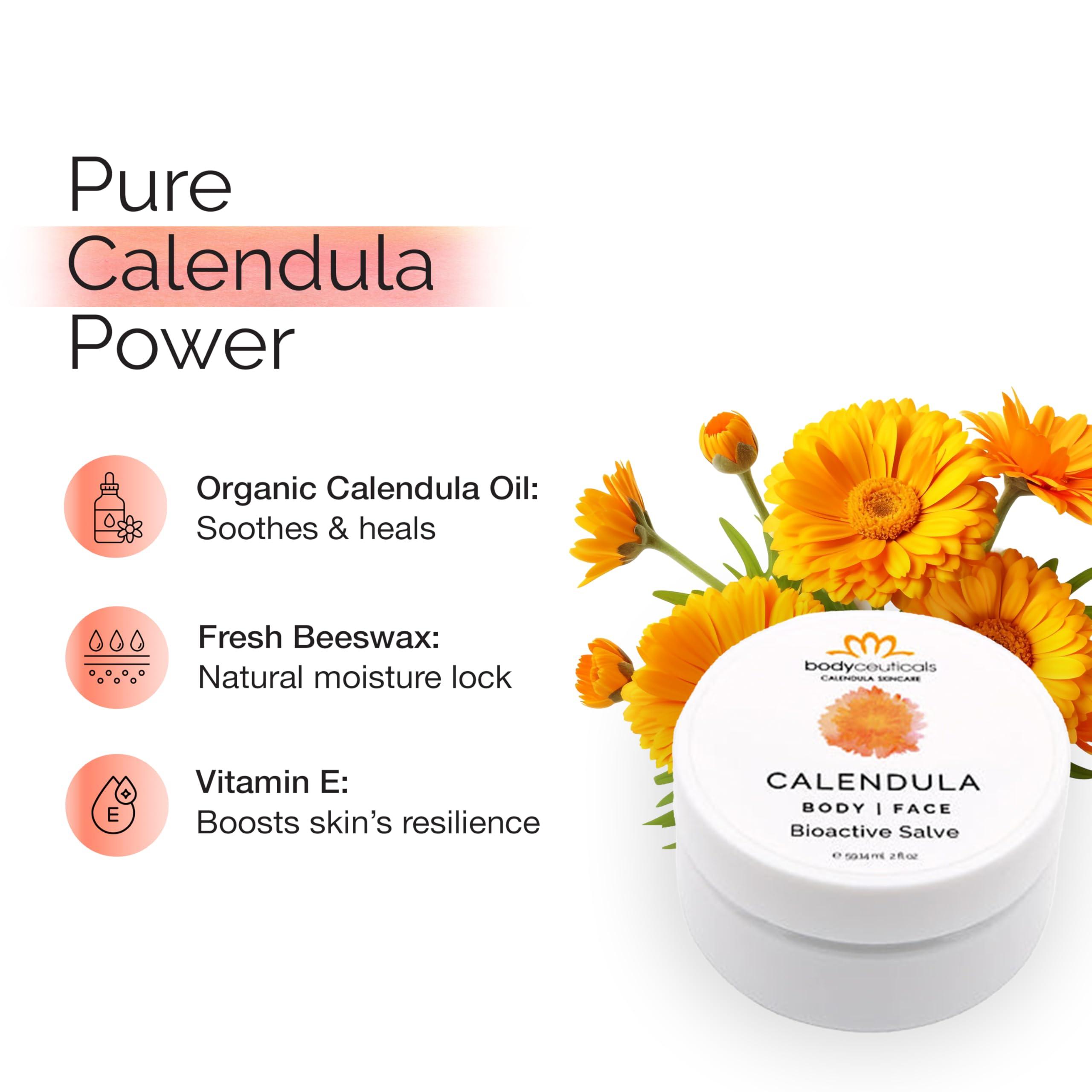 Bodyceuticals Bioactive Calendula Salve Jar with Beeswax Antioxidant-Rich Multi-Purpose Balm for Skin | Nourishing | Gluten free | Soy free | non-GMO | recyclable tube | Travel-Friendly | 2 oz