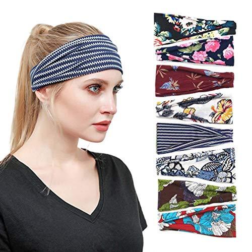 Bohend 8 Pack Boho Headbands Wide Flower Hair Band Boho Bandeau Stretchy Athletic Daily Use Hair Accessories for Women and Girls (I)