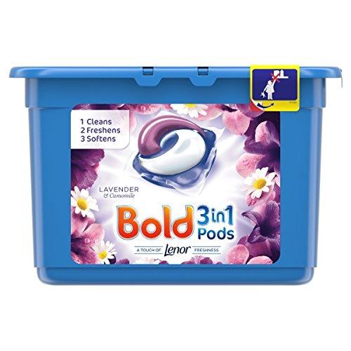 Details: 3-in-1 PODs: Irresistible experience: 1. Cleans 2. Freshens 3. Softens. Theres nothing like this Bold 3in1 Washing Capsules to feel the pampering, relaxing feeling of a spa and that relaxing feeling of bathing salts between your toes. The scent of this variant will make you feel like a million bucks. Take your senses on a relaxing stroll thought fragrant fields of fresh Lavender and let your cares melt away. This timeless scent blends soothing Camomile, Warm Woods and soothing Manuka Honey notes for a blissful feeling of serenity and harmony. Bold 3in1 Washing Capsules gets to work right at the heart of the wash. And if you really are crazy about scent, then we recommend trying Lenor Fabric Enhancers on top of your favourite Bold 3in1 Washing Capsules. WARNING! This product may be harmful and could cause serious injuries. Keep Bold 3in1 pods out of reach of children.. . . . Features: 3in1 PODs: Irresistible experience: 1. Cleans 2. Freshens 3. Softens. Bold 3in1 Washing Capsules deeply clean your clothes for brilliant results. Irresistible scents, designed by Lenor Perfume Experts. For a natural & relaxing lavender scent. Stylish pack. Also available in washing powder, washing liquid & washing gel . . . . Ingredients: >30% Anionic Surfactants, 5-15% Soap, <5% Non-Ionic Surfactants, Phosphonates, Enzymes, Optical Brighteners, Perfumes, Alpha-Isomethyl Ionone, Benzyl Salicylate, Coumarin, Hexyl Cinnamal, Limonene, Linalool