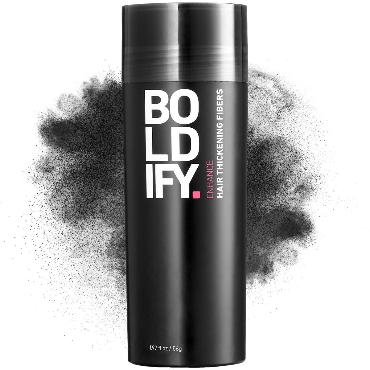 • INSTANTLY FILL IN THINNING HAIR WITH UNDETECTABLE FINISH: Made from natural ingredients, Boldify Hair Thickening Fibers bond seamlessly to existing hair for a real hair effect that's invisible to the eye. Perfect for enhancing the crown and partline, our fibers are designed with follicle-mimicking molecules for the most natural blend. Use Boldify Hairline Powder for areas with less hair.