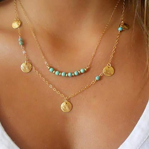 - Disk necklace chain made of alloy and turquoise, high quality workmanship, not easy to fade and break.