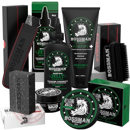 - Big Boss Grooming Kit: Bossman presents the full beard and skin care kit, that contains: Beard Jelly Oil, Fortify Beard Conditioner, Beard Balm, MUDstache Wax, Bar Soap, Metal Comb with case, and Beard Brush.