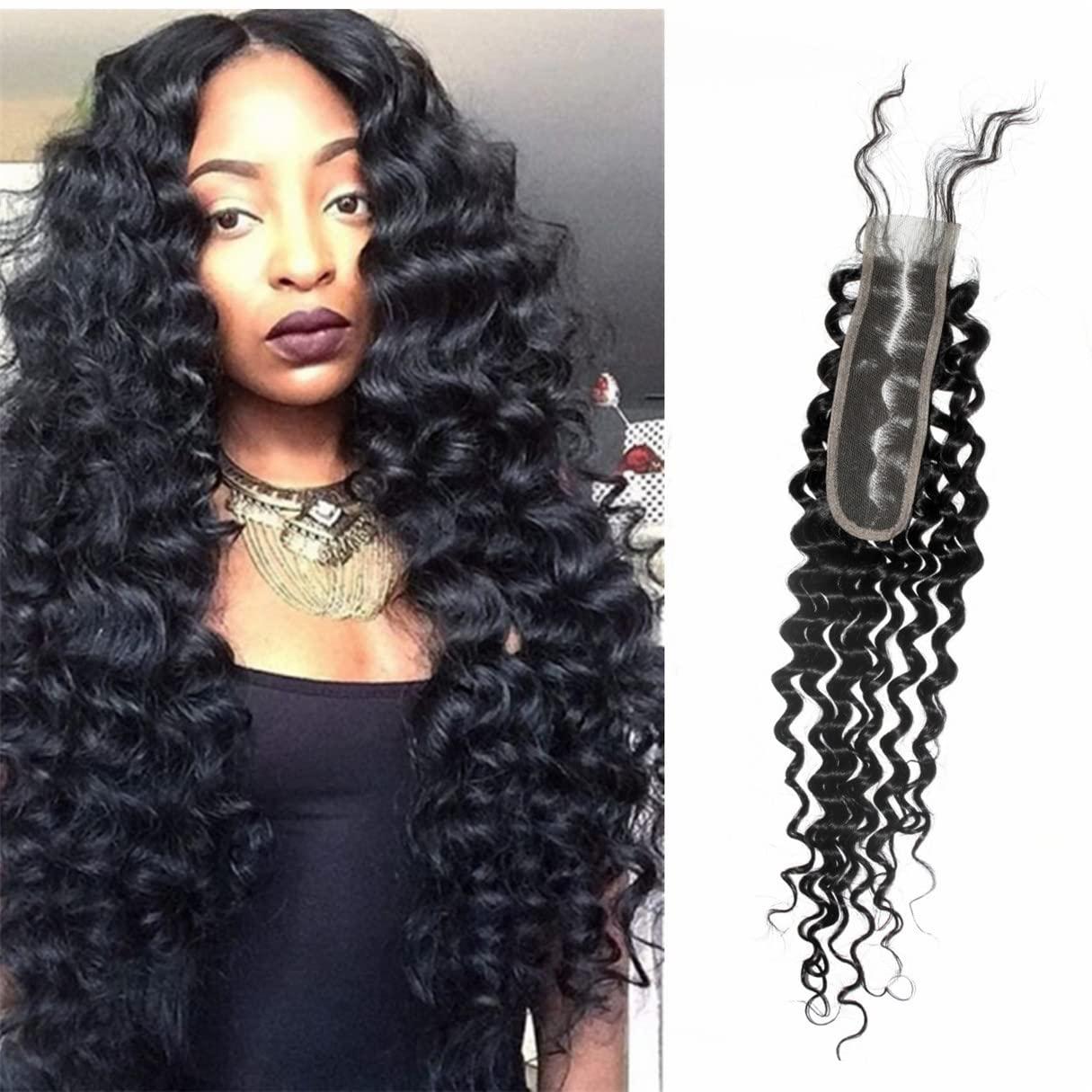 Brazilian Deep Wave 2x6 Lace Closure 100% Unprocessed Human Virgin Hair Deep Curly Closure Pre-Plucked Hairline Loose Deep Closure With Baby Hair (14inch, 2x6 deep wave closure)