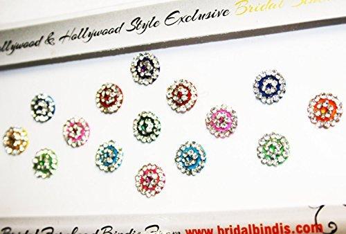 - 15 Round Pretty Beautiful & Colorful Crystal Fancy Authentic Bindis