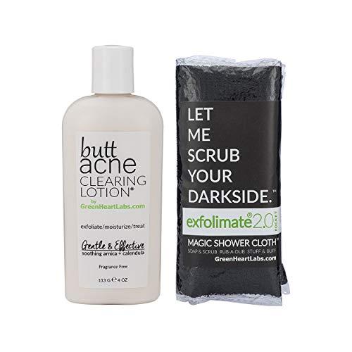 Brilliant Booty Kit | Butt Acne Clearing Lotion and ExfoliMATE Magic Body Exfoliating Cloth for Soft & Young Skin (Black)