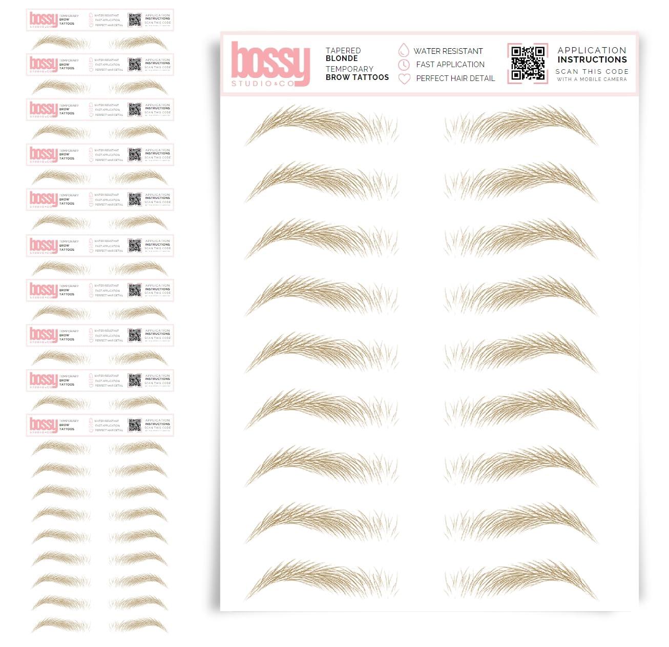 - PREMIUM QUALITY EYEBROW TATTOOS - Say goodbye to your old pencil-in brow routine that takes too long and smudges. Our Temporary Brows by Bossy apply in a few simple steps. Instructions, including Application Tips & Tricks, are included. Perfect for sparse, patchy, or over-plucked eyebrows. Give your eyebrows the definition and recognition they deserve! Each brow sheet comes with 9-11 pairs of identical, realistic-sized eyebrow tattoos.