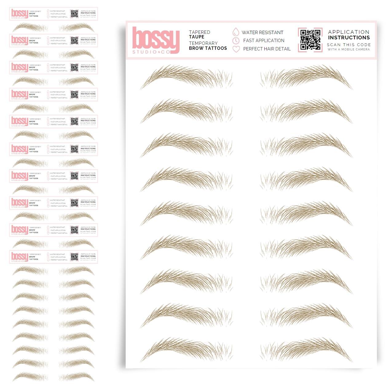 Brows by Bossy 10 Pack Temporary Eyebrow Tattoos Waterproof Eyebrow Stickers, False Tattoos Hair Like Peel Off Instant Transfer Brows For Women And Men | Natural Strokes, Shaping (tapered, taupe)