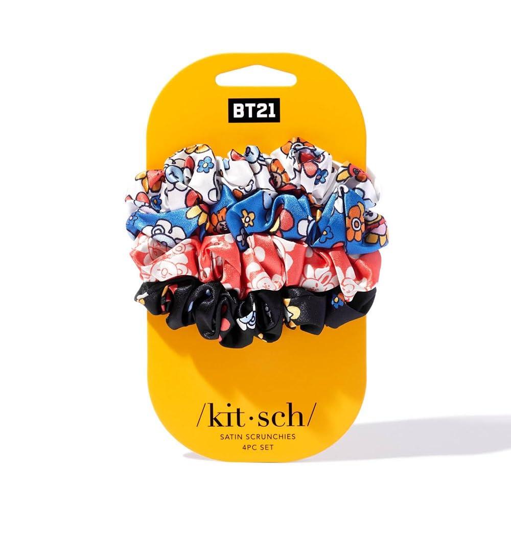 - SET OF FOUR SATIN SLEEP SCRUNCHIES: Upgrade your style with our set of four hair scrunchies for women's hair! Embrace funky floral prints with our cute scrunchies for thick hair, each adorned with your cherished BT21 characters, and elevate your bedtime routine with this charming collection!