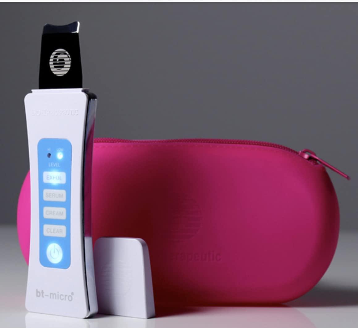 bt-micro Ultrasonic exfoliation creates high speed oscillations, leaving skin smooth, fresh, and perfectly prepared for product application Technology: Exfoliation, Product Application Category: bt-GEAR The bt-micro is the ultimate in hand held professional technology that offers ultrasonic exfoliation using forward thinking patented technology. bt-micro ultrasonic exfoliation works by creating high speed oscillations, leaving skin smooth, fresh, and perfectly prepared for product application. The bt-micro is powered by a rechargeable battery, and is compact and lightweight. Bio-Therapeutic products and equipment are not intended to treat or diagnose any medical conditions.