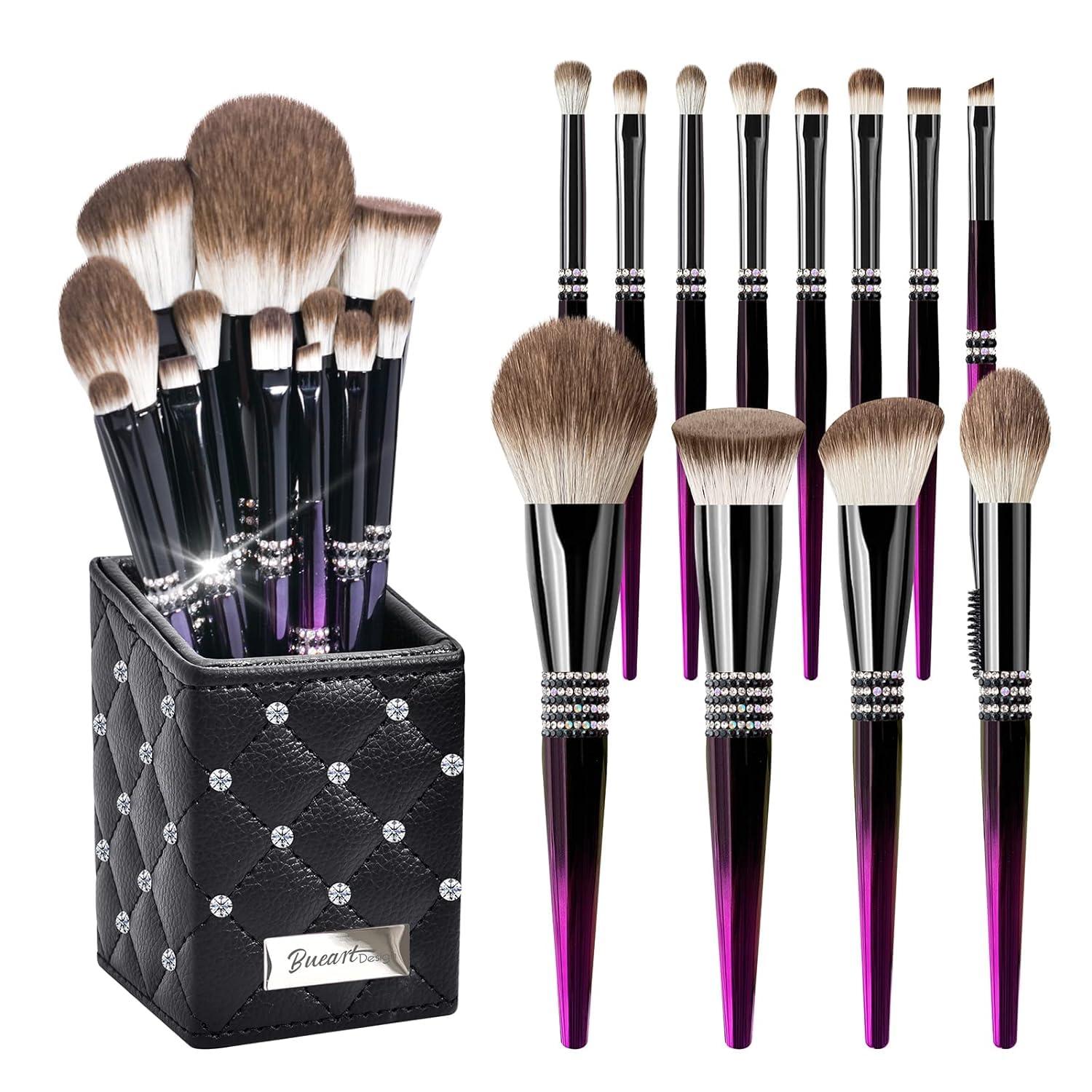 - Bueart-Tech Premium Soft&High Elastic Cruelty free vegan HairAn exclusive selection of high performance synthetic fibers. Boasts technologically advanced filaments with specialized tips. Gives a high definition finish. Holds & delivers makeup products without any absorption into the bristles. Evenly and efficiently sticks to catch the powder,Easy clean and quick-dry.