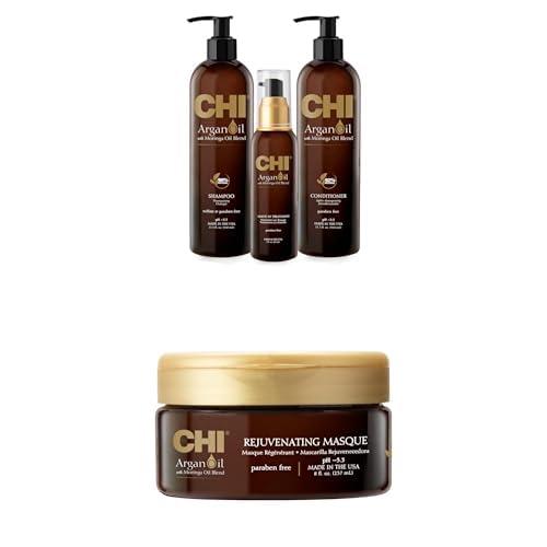 Bundle of CHI Argan Oil Kit with Shampoo, Conditioner & Oil Leave In Treatment and CHI Chi Argan Oil Rejuvenating Masque, 8 Oz.