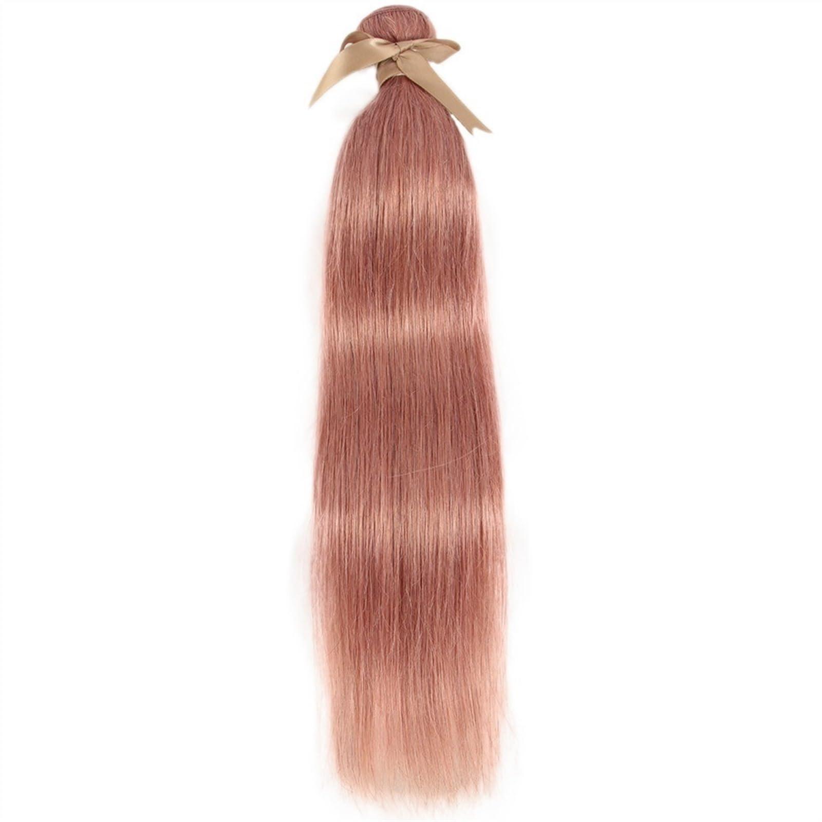 Brazilian Straight Hair Bundles 100% Human Hair Weave Rose Gold Pink Color Remy Hair 3 Bundles
