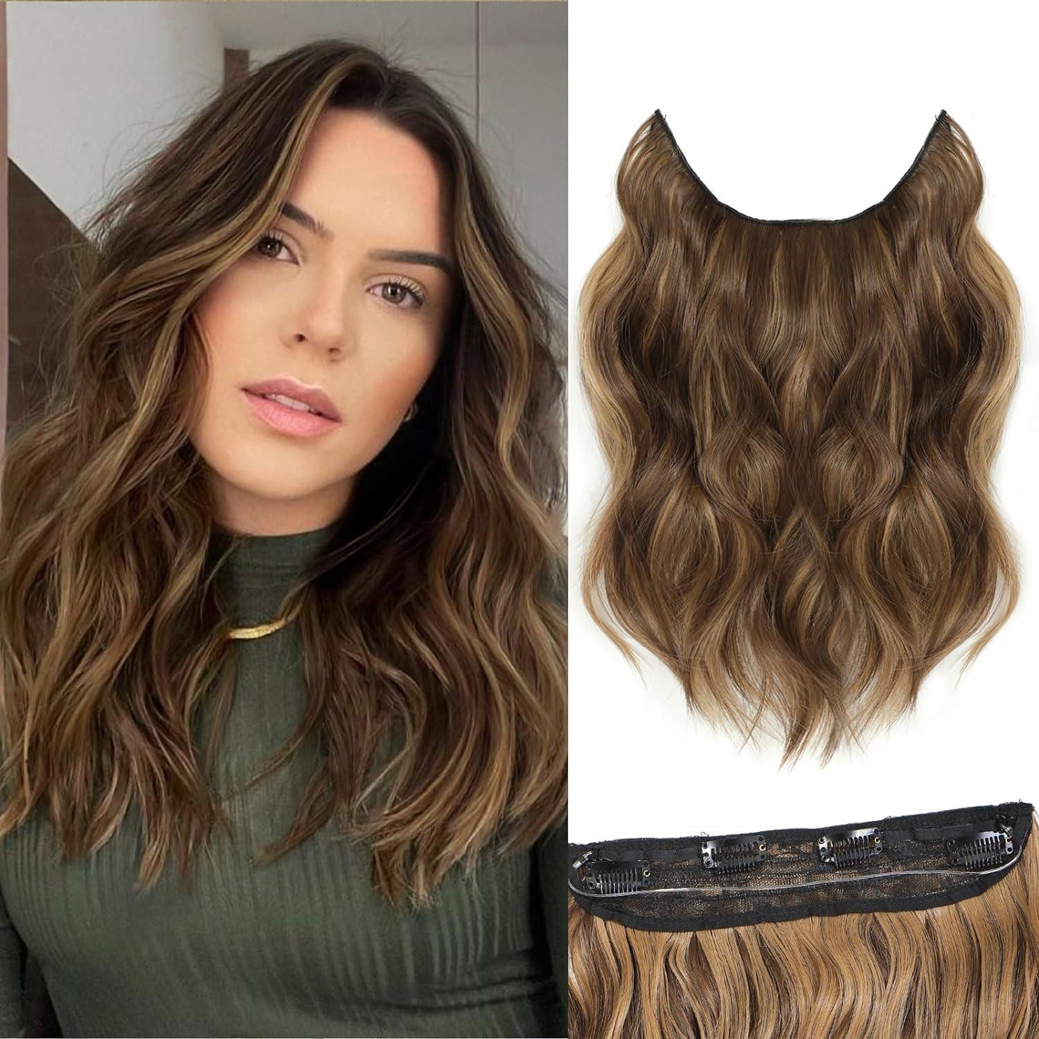 - 1Easy to ApplyCompared with traditional hair extensions, no tape, glue, halo hair extensions is faster and lighter, you can get fuller, longer natural wavy hair in 2 minutes! It can be worn on different occasions, such as attending weddings, parties and other special occasions, or it can be worn daily to do different hair styles, such as braids or ponytails