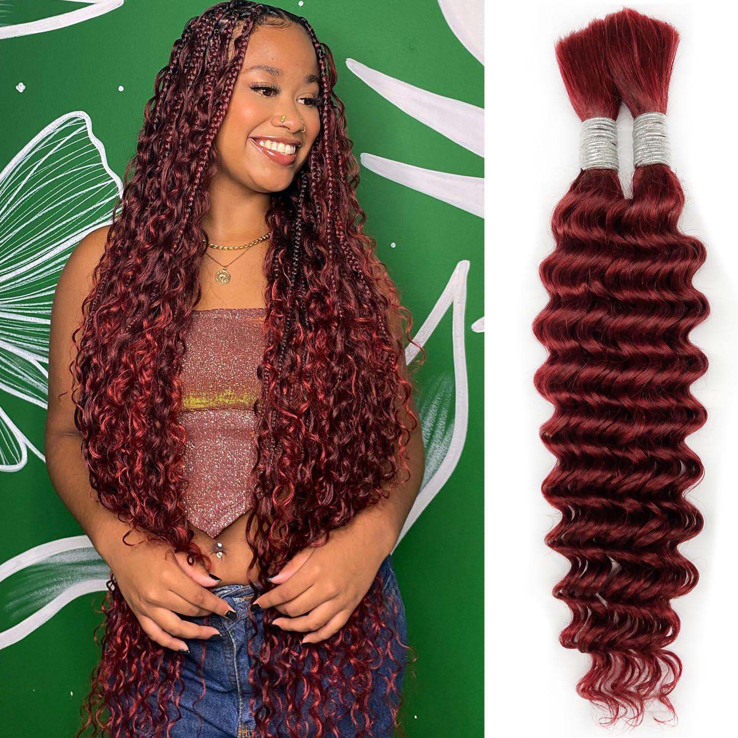 - Wine Red Human Hair Bulk Feature: 16 Inch-28 Inch are availabe; Color: #350/#27/#P4/27/#99J are Available, and they will be blended perfectly with same color synthectic braiding hair. Deep wave human hair bulk, also looks like Water wave human hair, is popular now. It definately will not let you down.