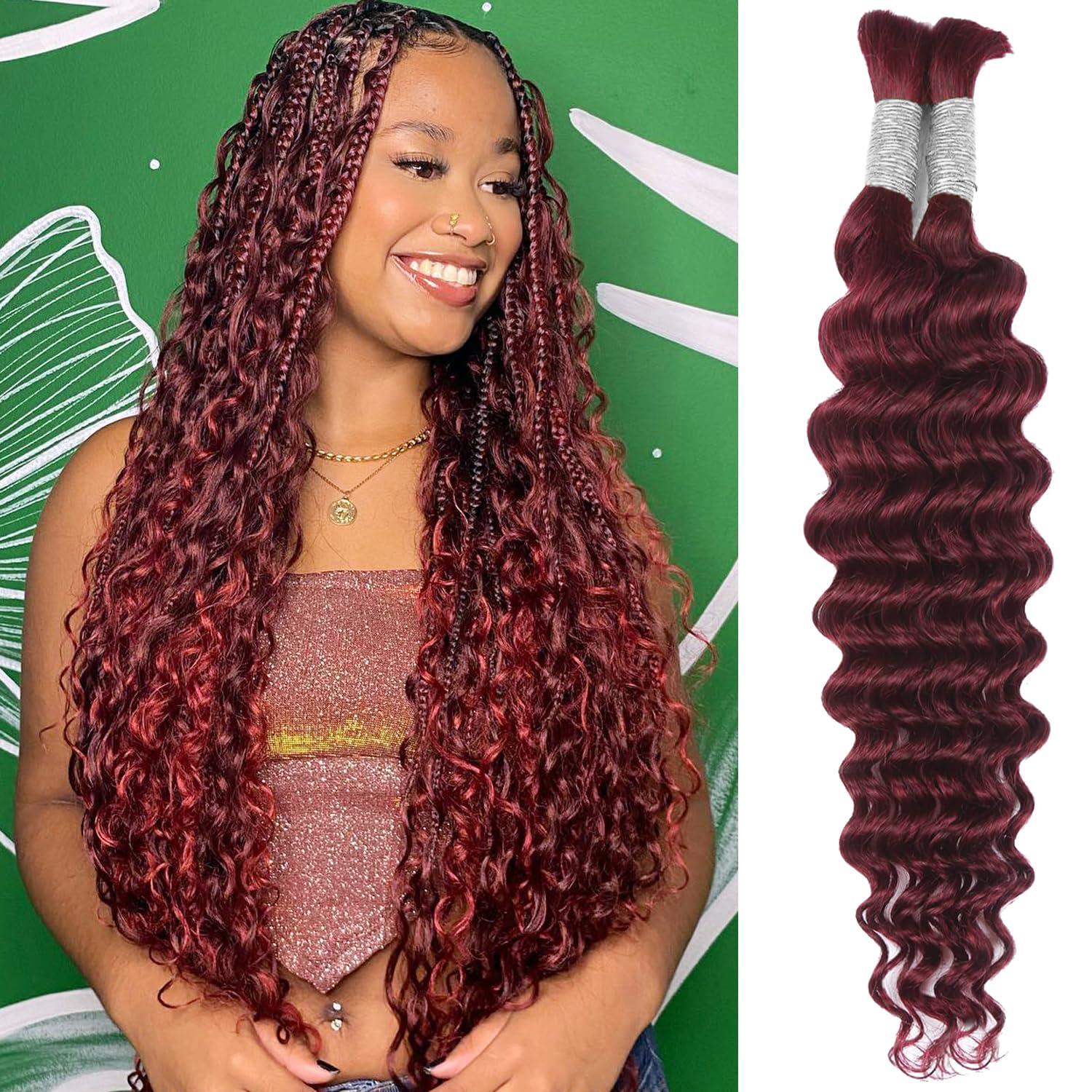 - Special Attension: Burgundy Deep wave human hair bulk is 100g (about 3.6 ounces)/pack, including 2 human hair bundles for braiding. If you want to do a full Bohimian braids, for a full boho look, we recommend you buy 3 or 4 packs. And our details page lists the effects of using 100g, 200g, and 300g respectively for your reference.
