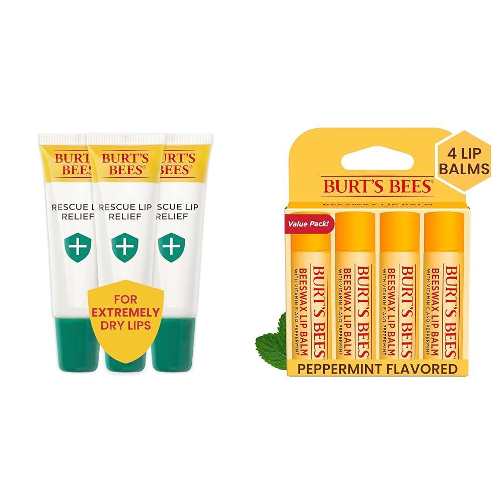 - Get 3 tubes of Burt's Bees Rescue Lip Relief Lip Balm (0.35 oz each) to instantly hydrate extremely dry, chapped lips with shea butter and echinacea.