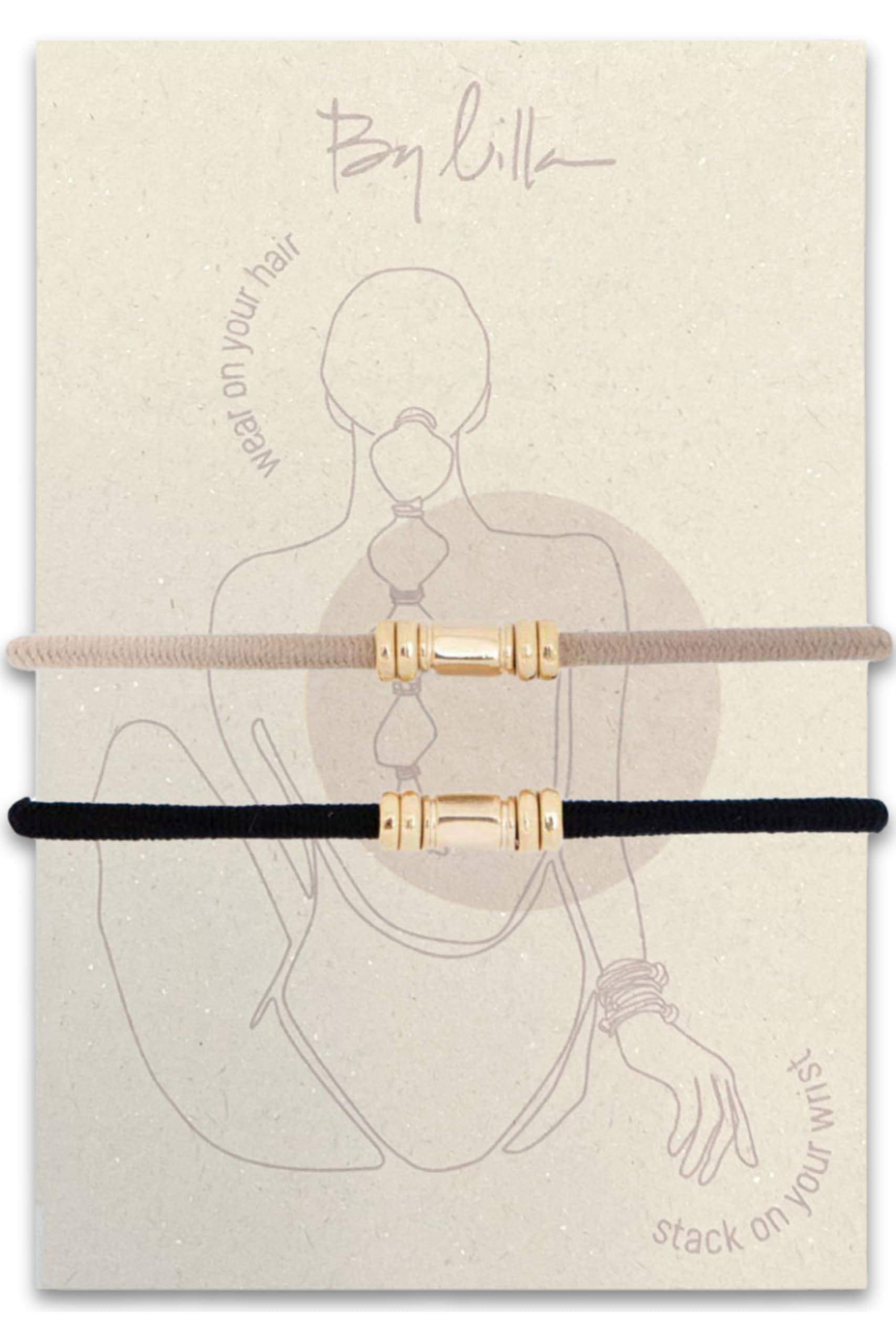 By Lilla made the best of both worlds for your wrist and your hair, you no longer have to choose between fumbling through your bag for elastic hair ties and having an ugly elastic band ready on your wrist. Say goodbye to the boring elastic and use these hair accessories that double as a bracelet. We made these trendy bracelets with the mission to get rid of all the ugly hair ties. Each By Lilla pack comes in a set of two elastics. You can combine the various designs and color variations to make your own stack. Youll surely make a statement that matches your style.