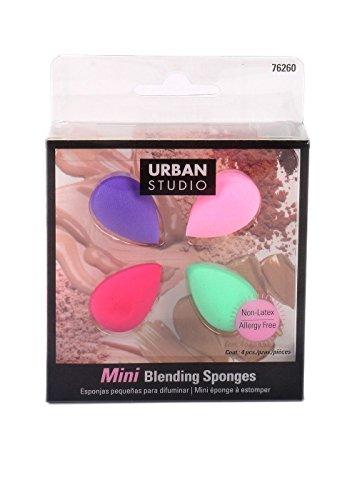 Urban Studio 4pcs mini blending sponges are ideal for small areas such as inner eye corners, sides of nose, and brow bones. Mini blending sponge enlarges in size when wet and bmes softer. Use urban Studio mini blending sponges to highlight, contour, conceal and correct with precision.