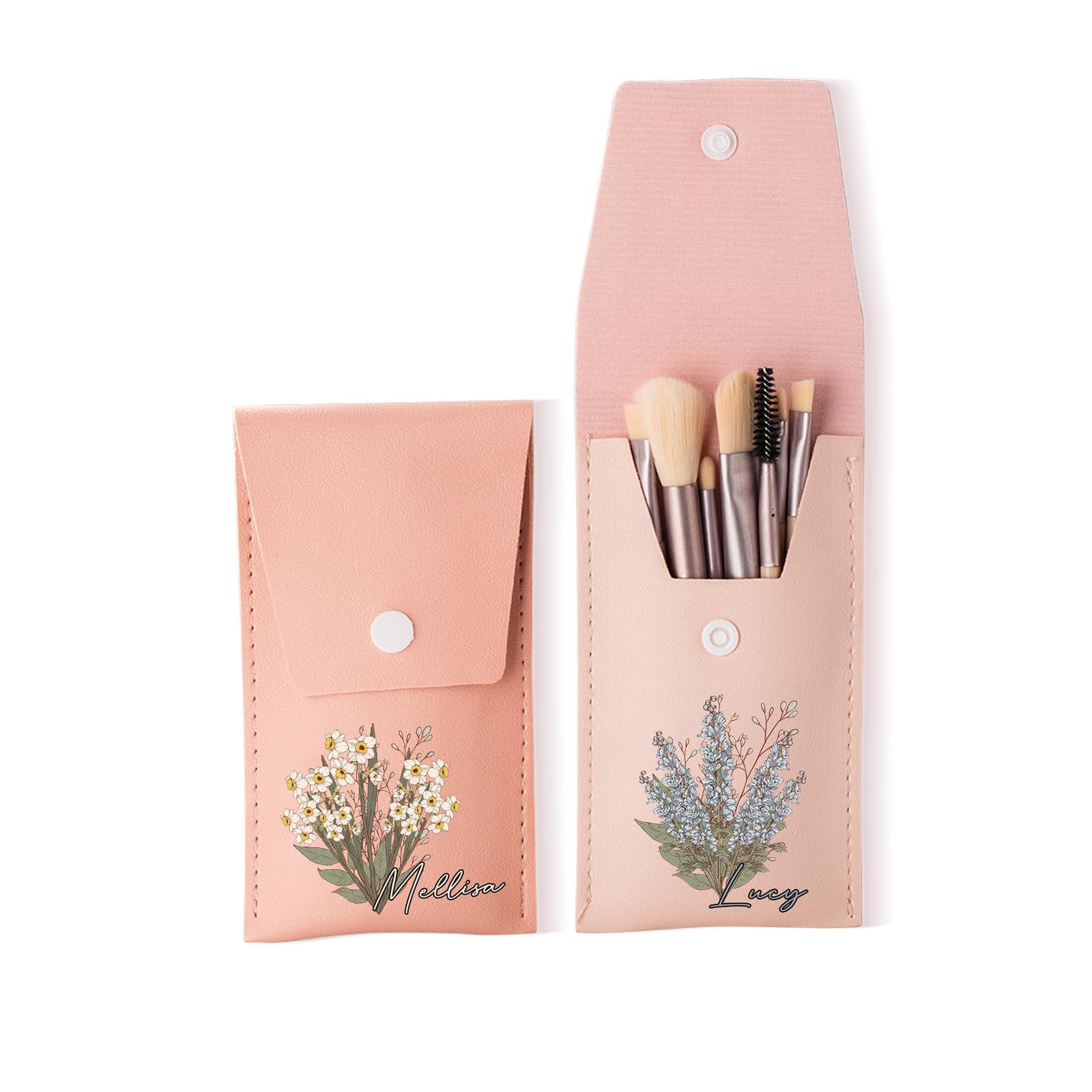- Makeup Brush Travel Case: What sets our makeup bag with brush storage apart from others is the ability to personalize it with the recipient's birth flower and name. Whether you're gifting it to your girlfriend, mother, or friend on a birthday, wedding, Valentine's Day, Christmas, Mother's Day, they are sure to appreciate the thoughtfulness behind it.