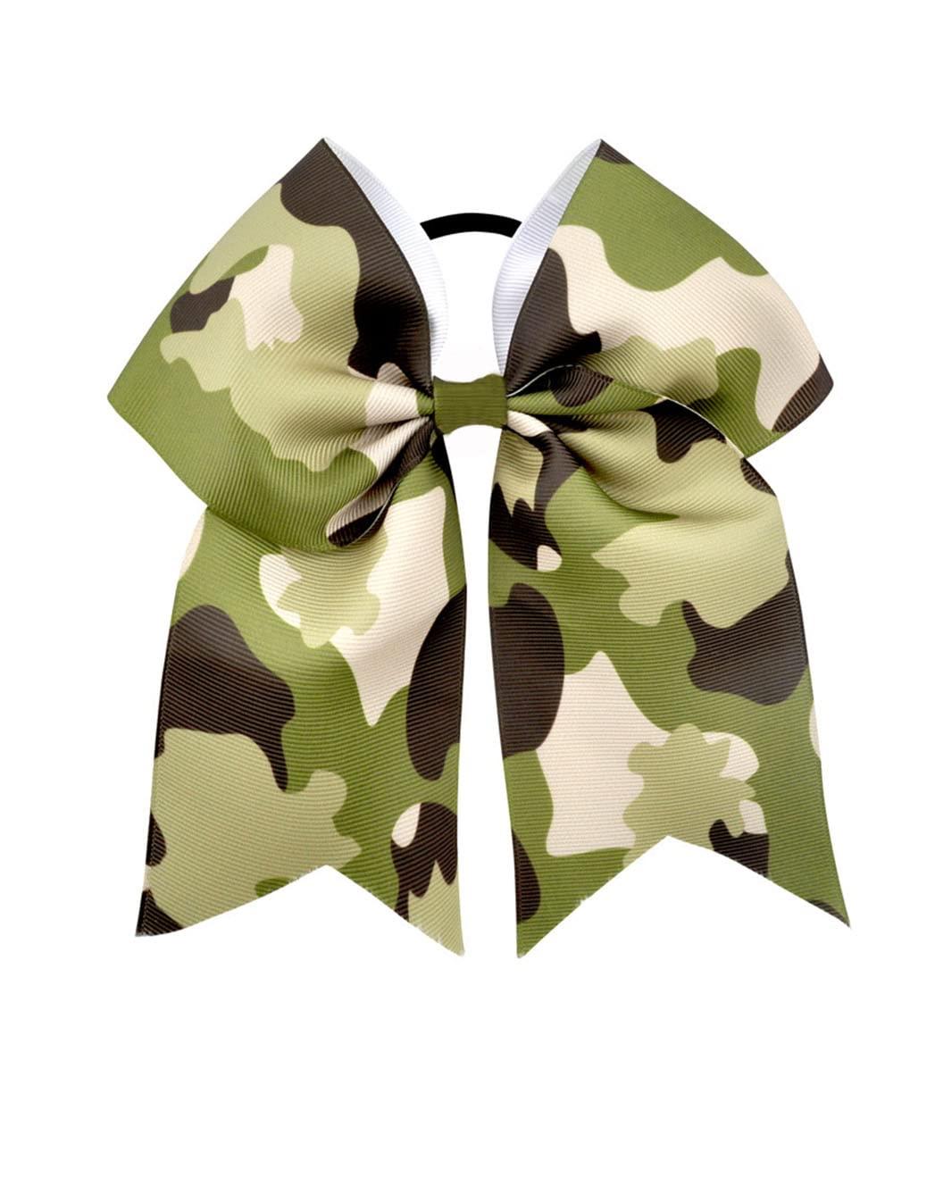 - Green Camouflage Cheer Bow for Kids Little Girls Ponytail Holder Come School Bow