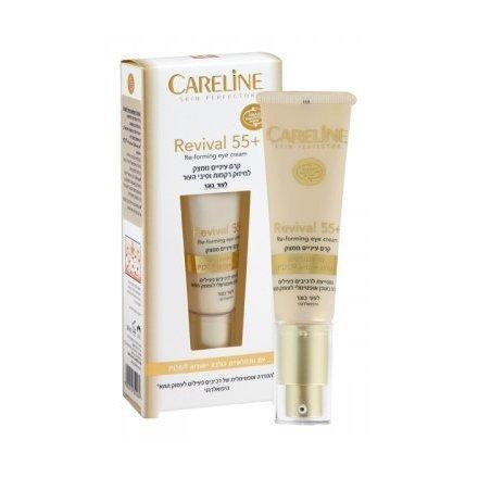 Revival 55+ Eye Cream firms and strengthens skin tissues and fibers With the years your skin is exposed to climatic damages and is influenced by hormonal changes. Collagen fibers are weakened, mineral levels are diminished, and the skin becomes weak, thin and fragile. Revival 55+From the Careline laboratories is based on a unique scientific patent; the PDS conducting method that assists active ingredients in creams to penetrate deeply and effectively into the skin. For treatment of mature and sagging skin. Eye CreamContains a mineral complex enriched with a high concentration of active ingredients to strengthen delicate and thin skin texture and blur existing wrinkles. It assists in reducing the dark circles and strengthening the skin around the eyes. Directions:On clean, damp skin, gently pat in the eye cream, starting at the outer edges in.