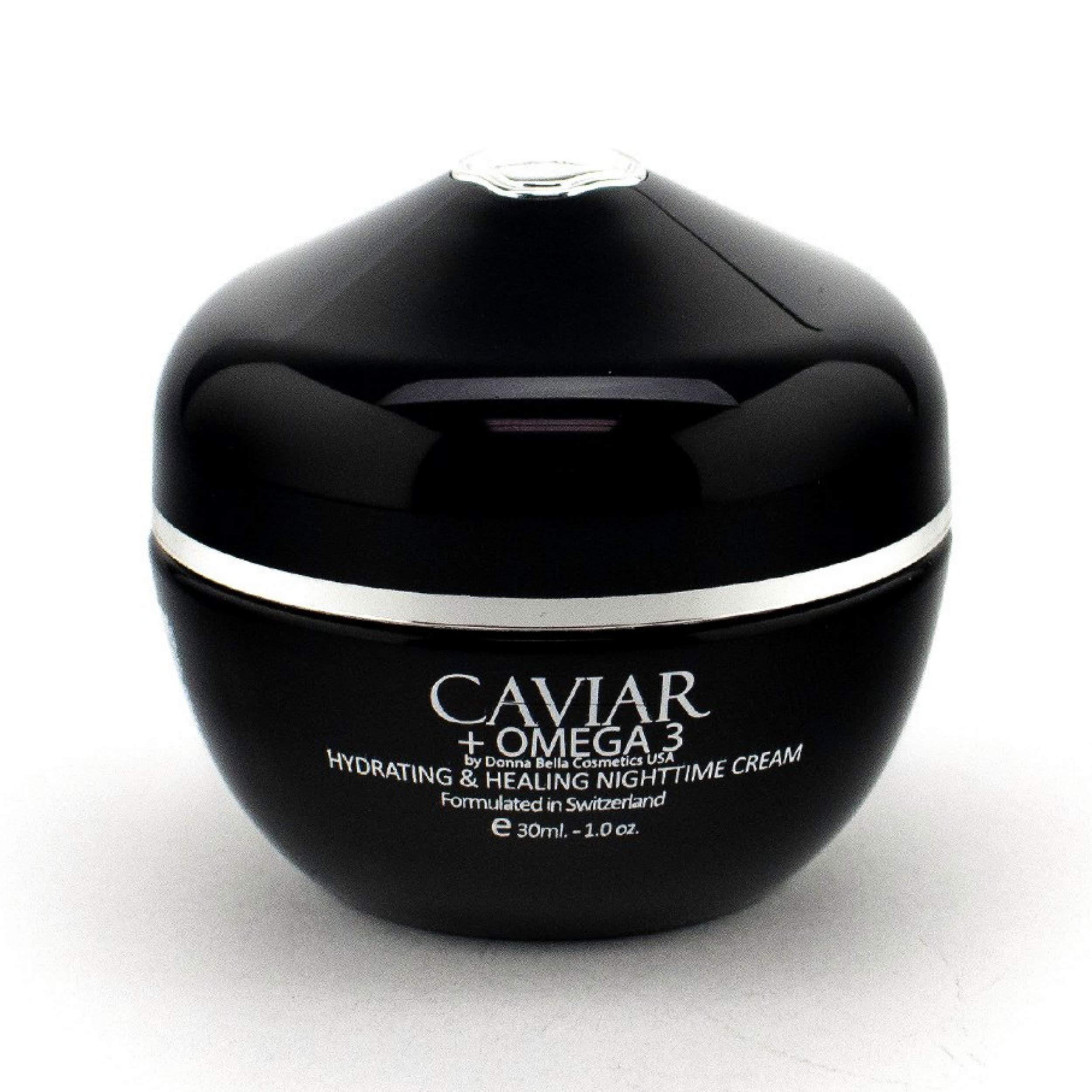 Donna Bellas Caviar + Omega 3 Caviar Hydrating & Healing Nighttime Cream replenishes lost moisture and helps to sooth weary and damaged skin. Continued use helps correct sun damage, minimizes wrinkles and restores volume.