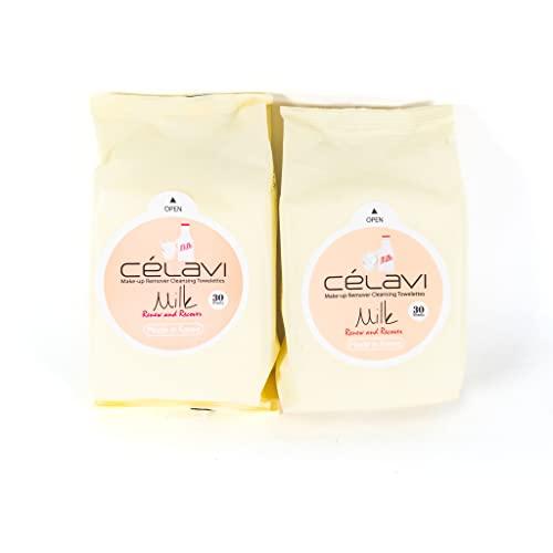 Milk flavor make-up remover cleansing towelettes help you to clean your make-up at any time during day and night. Slowly lift the front seal and remove tissues as needed. Gently wipe across the face to remove makeup, dirt and oil. Best if used within 45 days after opening. Keep package tightly closed and store in a cool dry place when not in use. Celavi make up remover tissues include 60 tissues per pack and 2 packs in one order. Made in Korea.