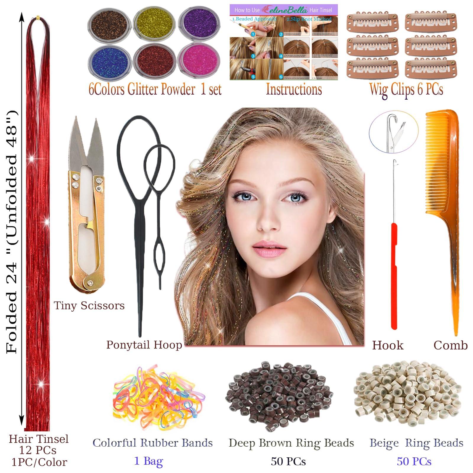 - Easy to Use:Tie The Tinsel Hair Directly into Your Hair by Hand;or Directly Braid the Hair Tinsel into Your Braids;or Use Hooks and Silicone Rings to Secure The Beads; or Tie The Hair Tinsel to The Wig Clip and Wear It on Your Head; or Use Adhesive Tape to Connect