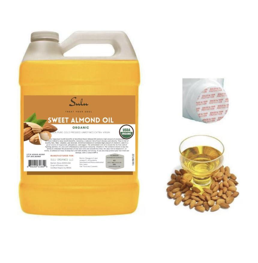Organic Unrefined Cold PressedSweet Almond oil is cold pressed from best quality almond kernels. It is rich in vitamin A, B and E, which are great for skin health. In fact, most skin care products have these vitamins loaded in them. The oil helps maintaining moisture levels of the skin and gets absorbed in a jiffy without blocking the pores. Overall, almond oil for skin care helps: Improve the complexion and retaining glow Moisturize better and deeper Soothe skin irritation and skin inflammation Relieve dry and irritated skin Nourish skin, making it softer and smoother Cures chapped lips and body rashes. Therefore, it is excellent as massage oil, this luxurious oil is also wonderful in soap. Use it in your cold process recipes at 5% and enjoy the moisturizing properties of this light oil. Sweet Almond Oil is renowned for its rich concentration of oleic and linoleic essential fatty acids which help to give it unequalled penetrating and restructuring properties. This oil also makes an unparalleled carrier for salt (for use in salt scrubs).