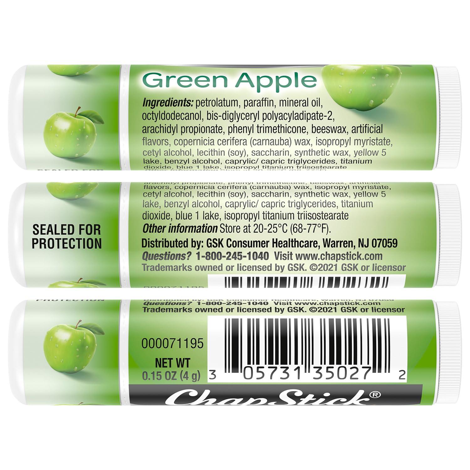 - FLAVORED LIP BALM: Stock up on 12 tubes of ChapStick Green Apple for a juicy sweet and sour treat that will leave your lips feeling deliciously tangy.