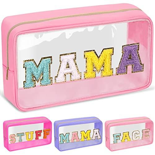 - Clear Makeup Bags MaterialsChenille letter clear cosmetics bag is mainly composed of high-quality pvc waterproof material, which does not fade, has no peculiar smell, and is durable. The edges are wrapped in waterproof nylon for a stylish look, durable and easy to wipe clean, dust and water resistant to easily protect your personal belongings.