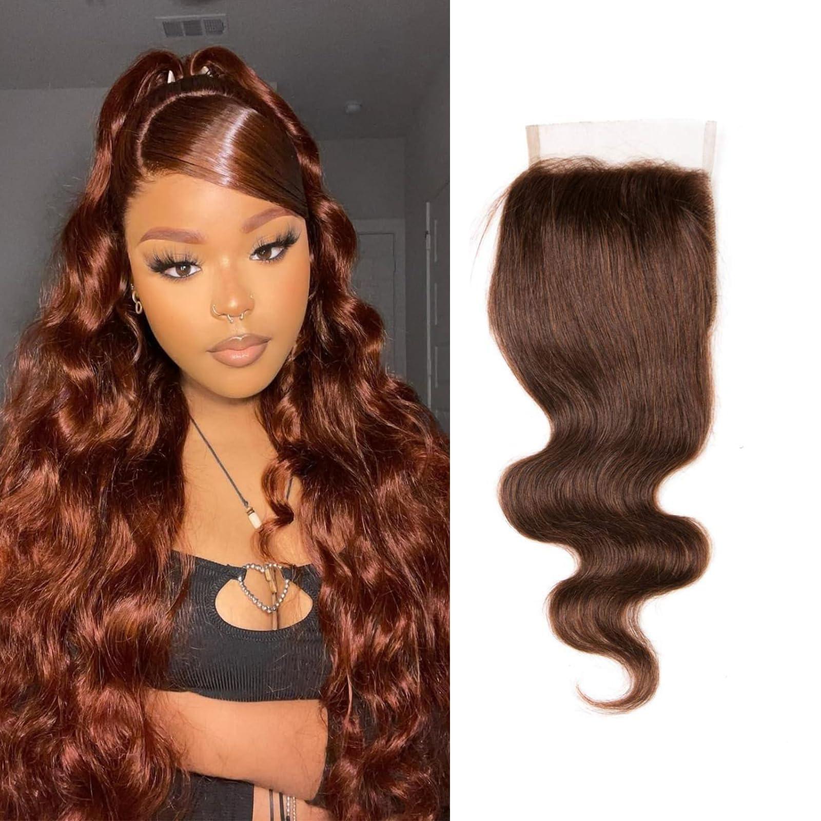 - 4# Brown Body Wave Hair Lace Closure Only:Weight(35-50g/pc;1.23-1.76oz/pc),paired with baby hair ,can make the hair look more natural & beautiful; suit for Weddings, Appointments, Themed Parties, and Back to School, It Can Also Be Used As a New Year and Birthday Gift to Parents and Friends.