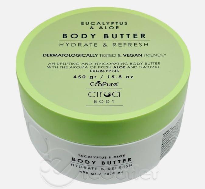 Ciroa, Eucalyptus & aloe Body Butter, Hydrate & Refresh, Dermatologically Tested & Vegan Friendly, 15.8 oz / 450 gr