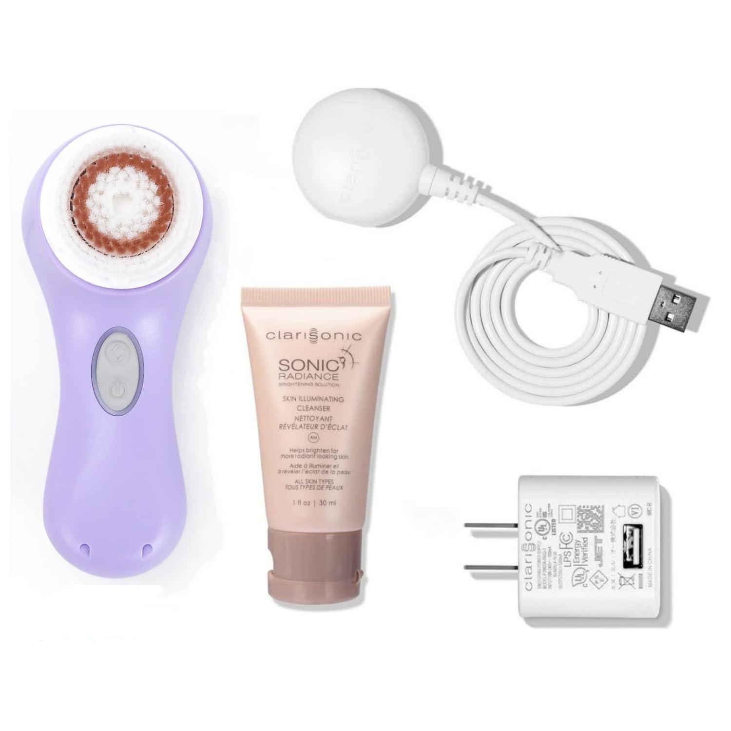 - Apply cleanser to wet brush head and gently move the brush in a circular motion on damp facial skin