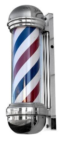 Classic Barber Pole with light. Plexiglas measures 9" diameter x 16" high. Overall measures 22"H x 12"W x 12"D.