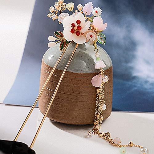 CHXIHome Classical Style Ancient Retro Hairpin Clip, Hanfu Tassel, Exquisite Vintage Headdress Jewelry Set, Hair Comb Ear Clips Set Pearls Tassels (A)