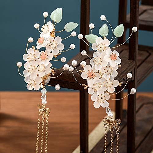 CHXIHome Classical Style Ancient Retro Hairpin Clip, Hanfu Tassel, Exquisite Vintage Headdress Jewelry Set, Hair Comb Ear Clips Set Pearls Tassels (D)