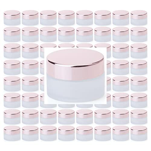 Clear Frosted Round Glass Jar With Rose Gold Lid, Empty Small Sample Travel Size Cosmetic Containers Pot For Eye gel Face Cream Makeup Beauty Products Oil Salve Ointment (15ml 0.5 oz, 60 Pack)