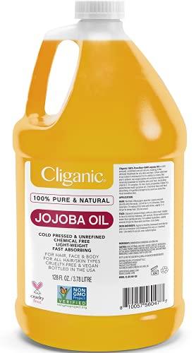Cliganic Jojoba Oil Non-GMO, Bulk Gallon 128oz | 100% Pure, Natural Cold Pressed Unrefined Hexane Free Oil for Hair & Face