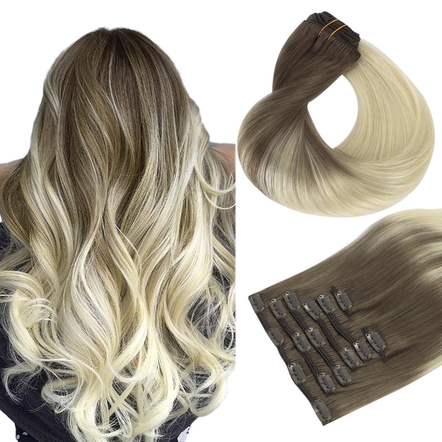 - Available in Various of Colors & Sizes. -- Our Clip In Human Hair Extensions are available in a set of 7 pcs 120g. Available in 6 lengths from 14 inches to 24 inches. Blonde Hair Extensions, Balayage Hair Extensions, a variety of colors to satisfy your color cravings and to match your hair perfectly . You can wear 1 piece to add a ray of radiance to your hair, or you can wear all clip ins to make your hair look fuller, and more charming.