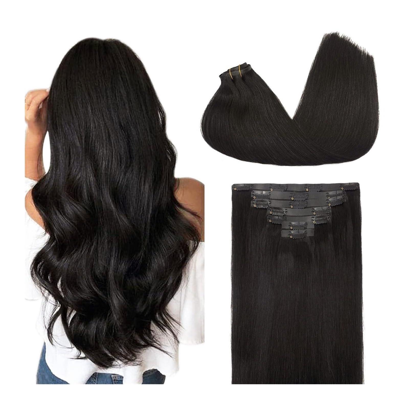 Seamless Hair Extensions Human Hair Black Clip in Hair Extensions Double PU Weft Invisible Straight Natural Remy Clip on Human Hair Extensions