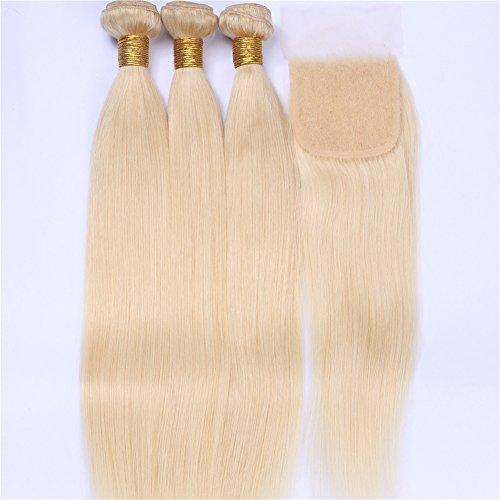 Cloud Hair Top Lace Closure With Blonde 613 Hair Wefts 4Pcs Lot Brazilian Silky Straight Virgin Hair 3Pcs With Lace Closure 4x4 (10 10 10+8 inch closure)