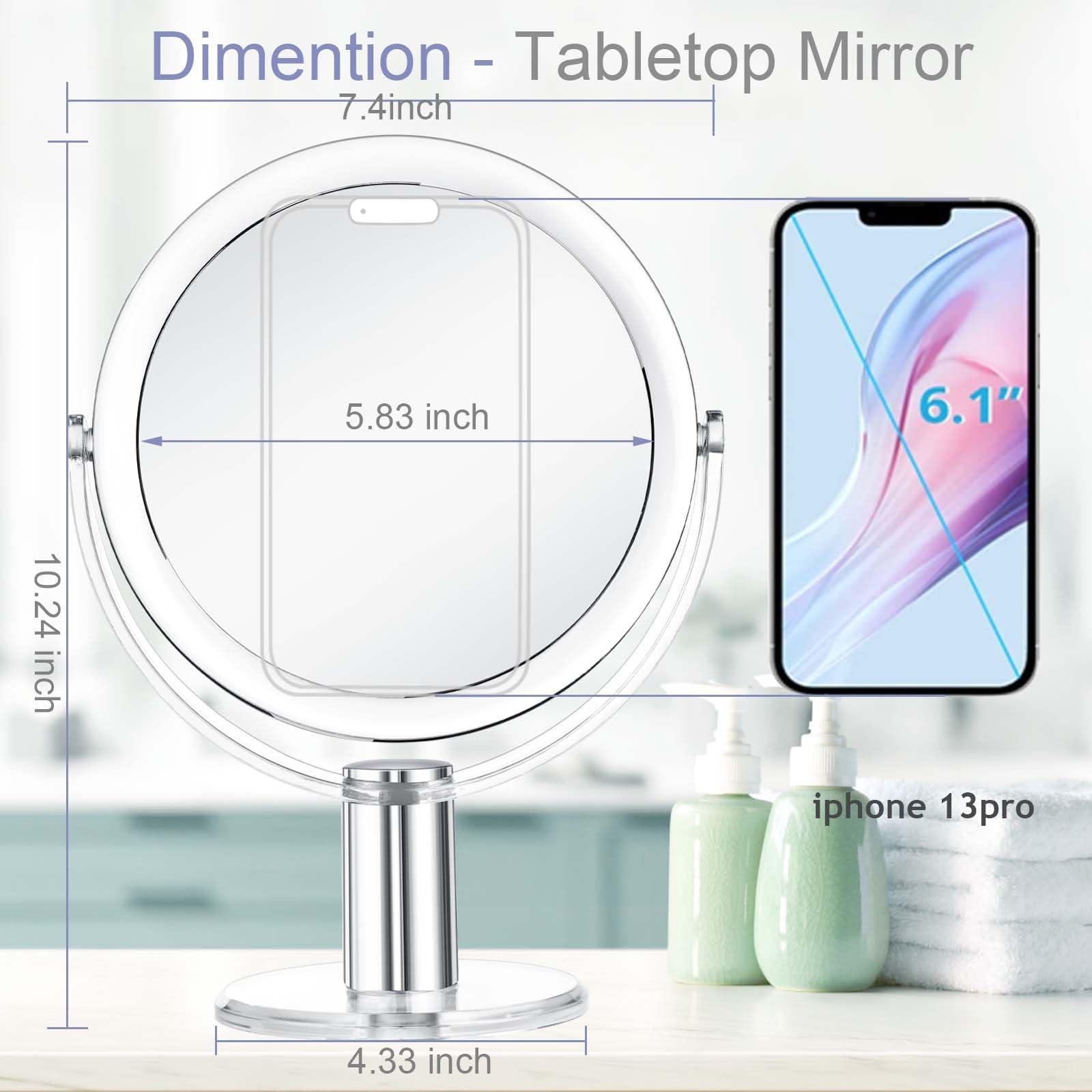 - FASHION VANITY MIRROR - Made with our stylish acrylic frame, it looks very classy and has a beautiful glossy finish. 7.4 inches size saves space for your table top, Transparent appearance with base, it can be placed in any scene harmoniously.
