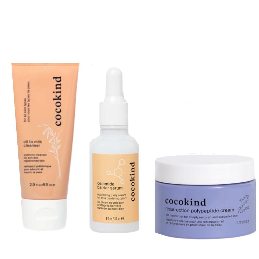 Cocokind Daily Routine with Oil to Milk Face Wash, Ceramide Barrier Serum, and Resurrection Polypeptide Hydrating Cream