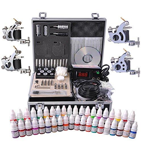 - Complete Tattoo Kits - Comes with 4 machine guns, 2 practice skins, a power supply with LCD display, 4 tattoo grips & a portable carrying case with more accessories for convenient use at any time; Perfectly designed for tattoo artists, starters, apprentice or any tattoo lovers to practice in free time