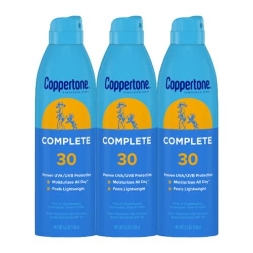 - Includes three (3) 5.5 ounce bottles of Coppertone Complete SPF 30 Sunscreen Spray
