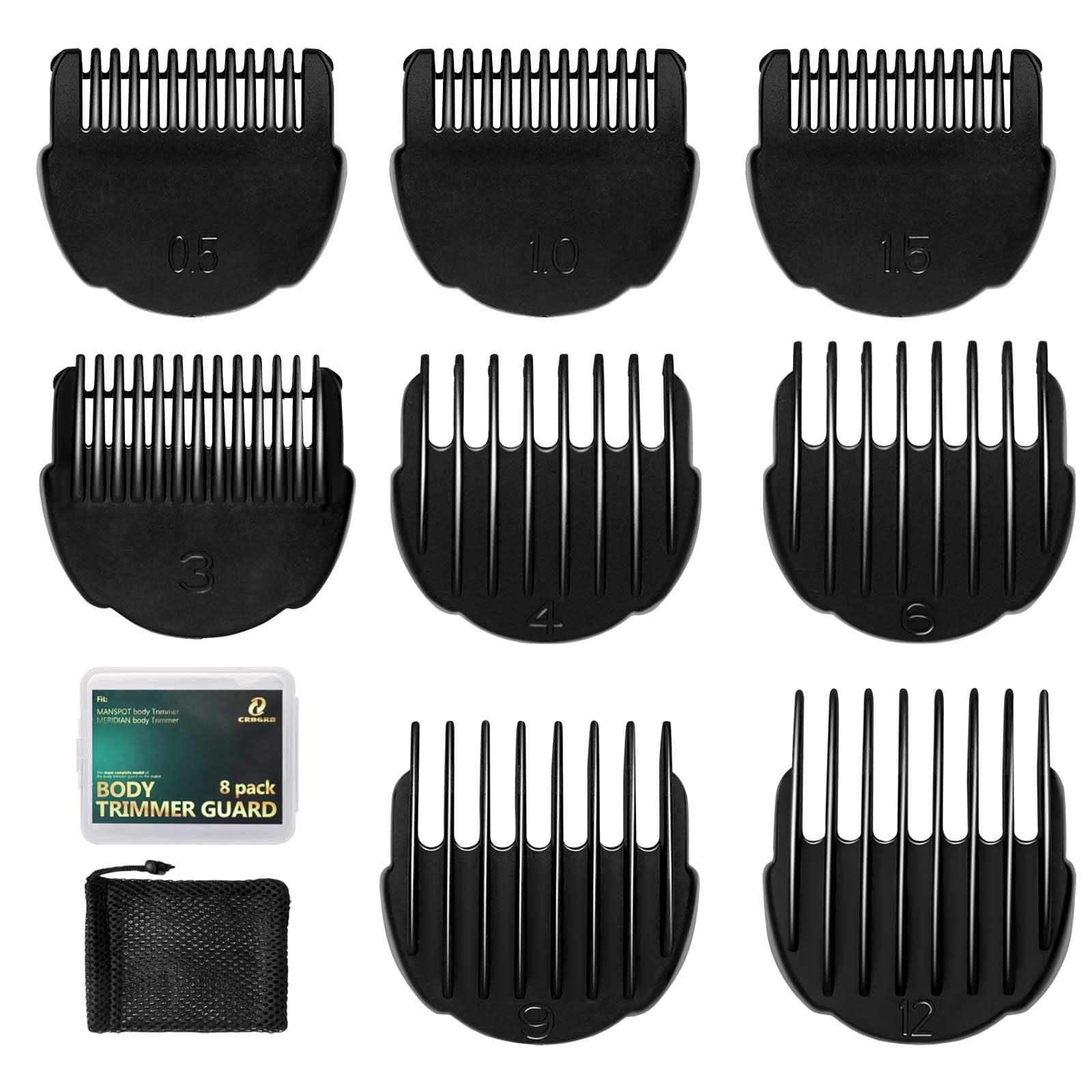 - Precision Grooming with Body Trimmer Guards:Elevate your Manspot and Meridian experience with our meticulously crafted Body Trimmer Guards. This set includes sizes ranging from 0.2inch (0.5mm) to 0.5inch (12mm), providing versatile options for your grooming needs.