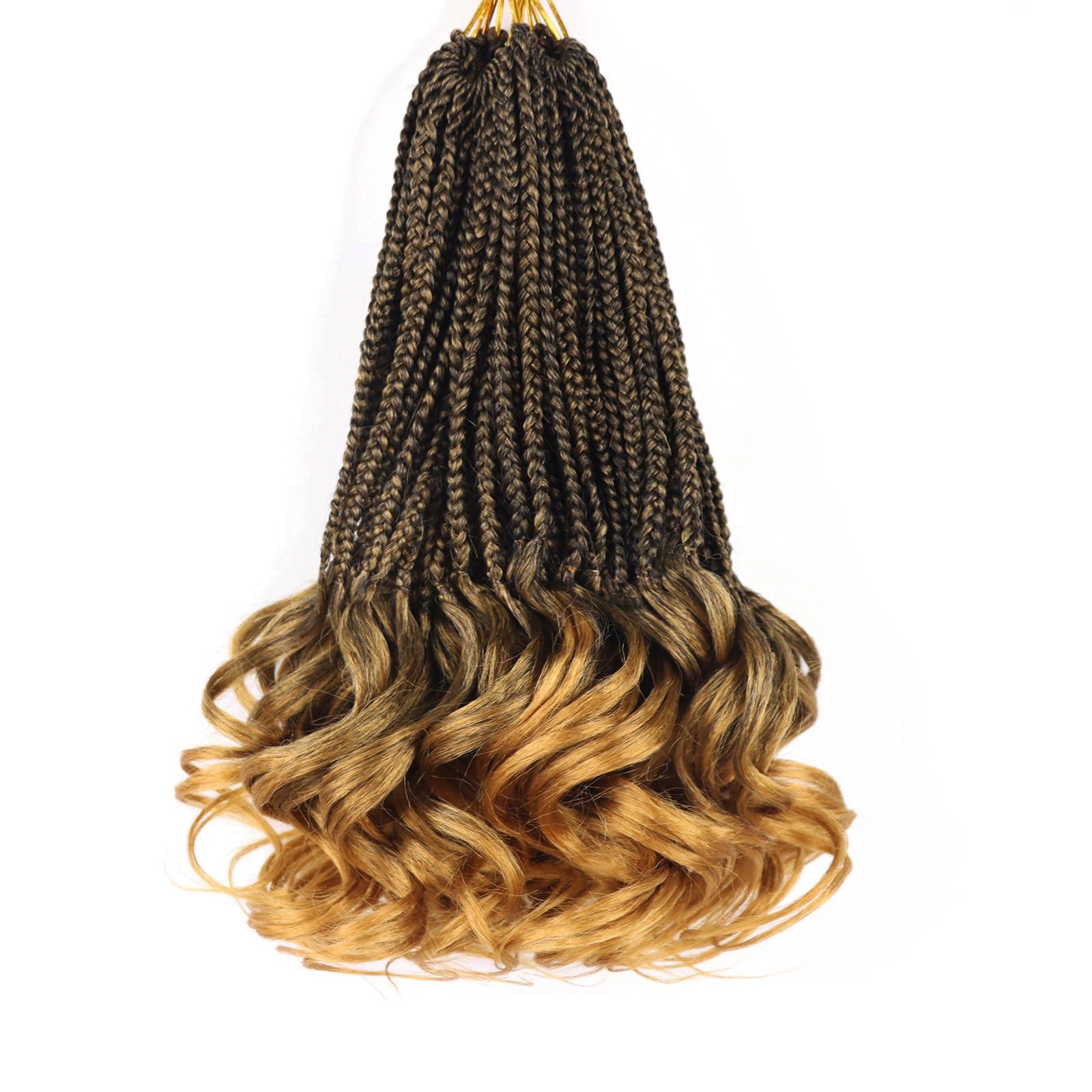 Crochet Braids 12 Inch Goddess Box Braids Crochet Hair Pre Looped French Curl Braiding Hair Short Curly Crochet Hair Extensions Braiding Hair Layered French Curl Braids with Curly Ends(1B/27)